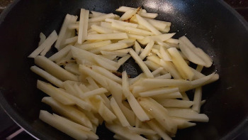 감자칼 사용은 감자를 포크에 꽂아 필러를 사용해 본다. 아직