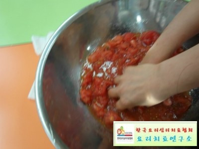토마토 잼을 만드는 과정입니다.