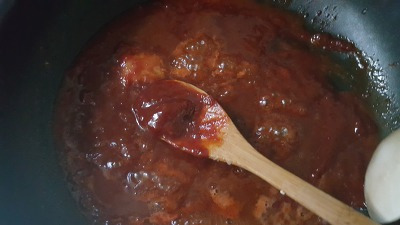 다진 마늘, 청주 등을 섞어서 바그바글 끓여 졸여 지면