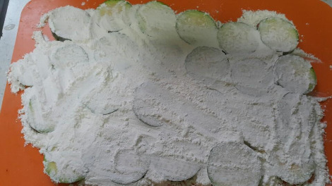 8. 밀가루 묻은 호박을 달걀물에 퐁당