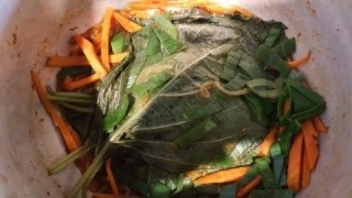 초록빛과어울리게 당근을 채 설어 덮어주고