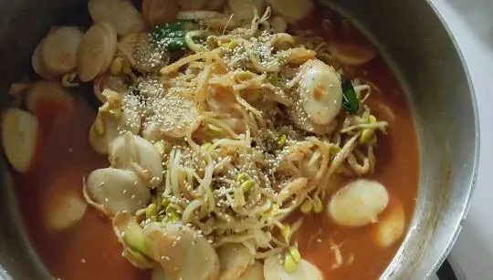 떡국떡, 콩나물, 오징어채, 파, 통깨, 고추장, 올리고당, 매실액, 다진마늘