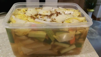 야채들, 물, 식초, 설탕, 피클링스파이스,