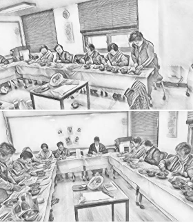 어르신과의 수업은 강사의 박수와 몸놀림으로 시작한다 나는 크게 박수를 치면서 큰소리로 어머니, 아버지 라는 호칭으로 인사를 전한다. ‘편한 자리에 앉으셨느냐, 짝꿍이 마음에 드시느냐, 식사는 맛있게 많이 드셨는가, 오늘 왜 오셨는지 아시느냐, 강사가 마음에 쏙하고 드실 것이다’ 라고 큰소리 빵빵하게 치면서 똑같은 말을 여러번 반복적으로 설명하고 다시 또 확인하는 일을 입이 마르고 닳도록 한다. 거기에 온 몸으로 덩실덩실 춤사위까지 곁들이면서 말이다. 어르신들의 실수에도 큰 몸놀림으로 실수를 웃음으로 승화할 수 있는 스킬을 발휘해야 하고 짜증과 신경질, 즉 까탈스러운 어르신에게는 애교를 섞어가면서 재롱(?)을 떨어야 한다. 아낌없는 방법의 기술을 연구해야 하는 일(?)이 바로 어르신들과의 관계이다.