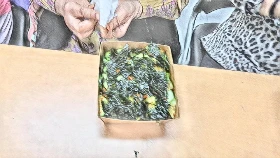 8.조미김을 비닐봉지에 담아 잘게 찢어 오이 양념장 위에 올리기