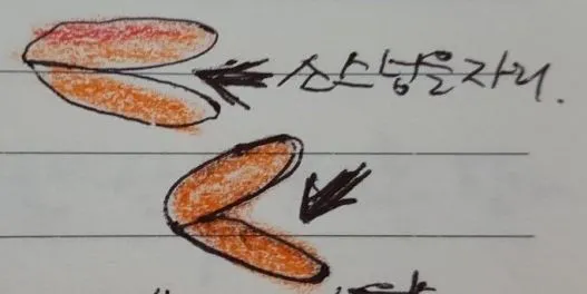 양손 사용( 협응, 힘조절)으로 한손은 그릇이 움직이지 않도록 잡고 다른 한손은 숟가락으로 눌러서 으깬다.