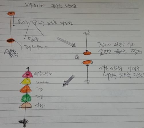 ③꼬치를 바로 세워서 아래로 내릴 수 있도록 지도한다.