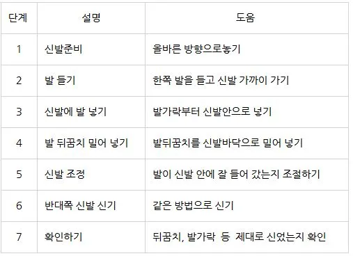 덥고 땀이 난다 - 발을 만진다(행동). - 여름용 운동화 착화. 양말 착용(쾌적한 발을 만들어 주어야 한다) 상황에 맞지 않는 행동, 바람직하지 않는 행동을 할 경우에 안 되는 이유를 설명한다. 보호자는, 혹은 치료사는 우리가 먼저 결론을 내고 그 결론까지 주입식으로 설명하려고 하지만, 이유와 결론을 함께 말하지 않아도 된다. 그들의 특성에 맞게“안 돼. 하지 마.” 의 결론부터 말해 주어야 하는 친구와, “더럽다. 냄새난다.”그러지 말아야 하는 이유를 설명해 주어야 하는 친구가 있다. 나의 오랜 경으로는 이용자 스스로 충분히 해답을 찾아 갈 수 있도록 해야 되는 일도 나(치료사)의 몫이다. 이용자에게는 정답보다는 느리지만 다양한 해답을 찾아가는 길을 알려 주는 것이 바람직하지 않을까 생각한다. 그러나 여름이 오기 전에 샌들, 크룩스, 슬리퍼보다는 그럼에도 신고 벗기 편리한 여름 운동화를 선택하여 준비하도록 권장하고 싶다.