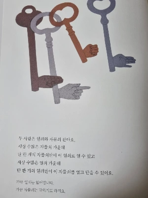 수많은 열쇠와 자물쇠 중에서 단 한 개의 열쇠가 자물쇠가 되어 마음을 열었지만 가끔 열쇠는 없어지고 자물쇠는 막히기도 한다.