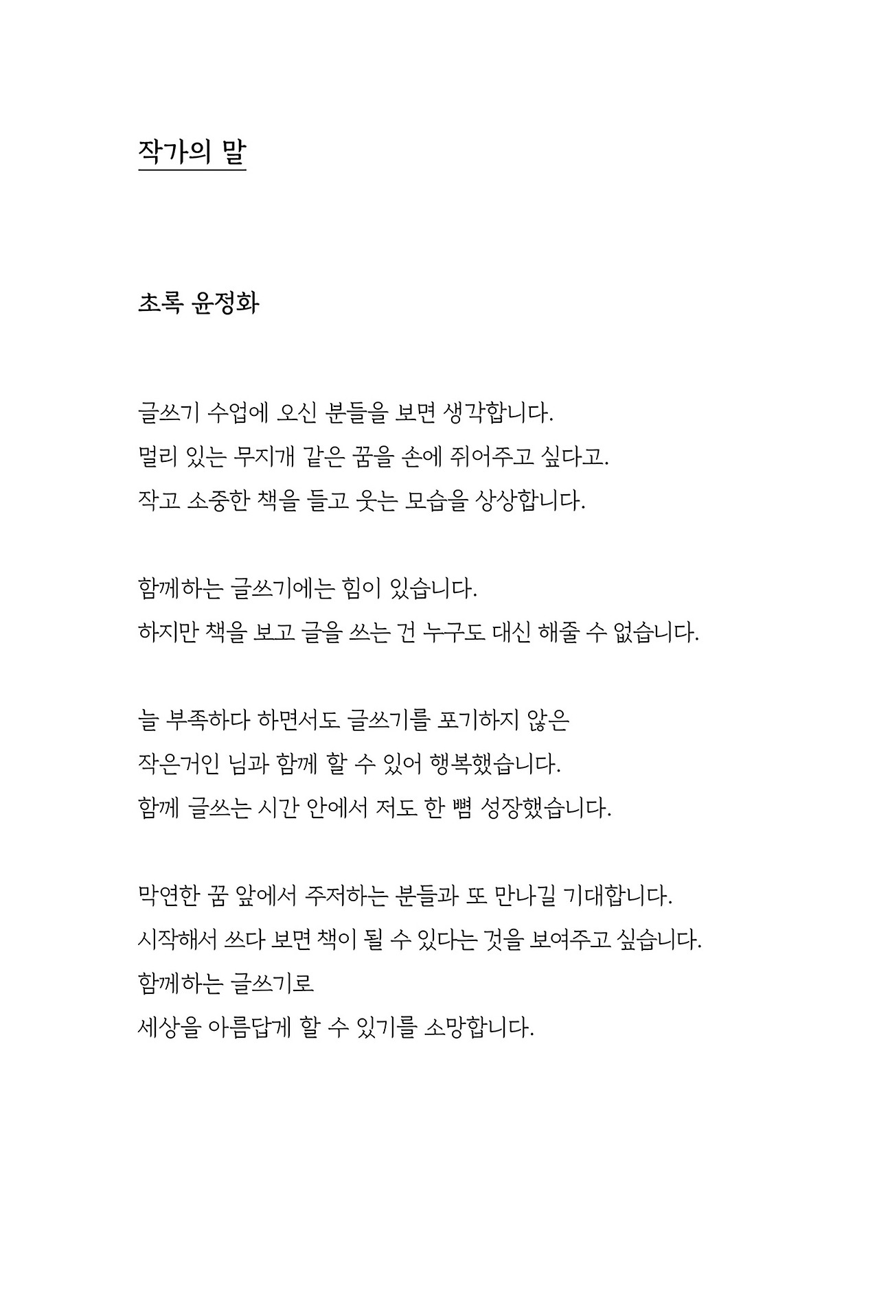 글쓰기를 두려워하지 않도록 용기를 드렸고