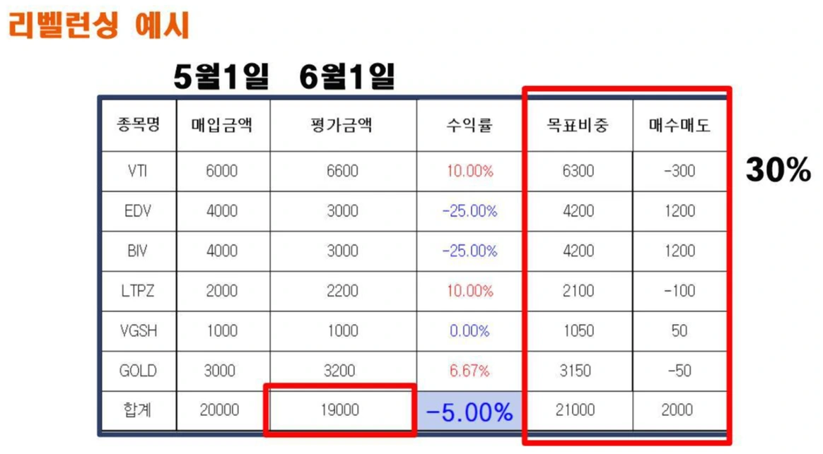 자산 재분배의 근본적인 목적은 포트폴리오의 위험을 낮추고, 가격 변동에 따른 장점을 취하는 것이다. 자산 배분 전략에서 분산 투자와 자산 재분배의 조합은 비이성적인 투자를 벗어나게 해주는 훌륭한 행동 장치임을 이해하자.-마법의 돈 굴리기, p.321-