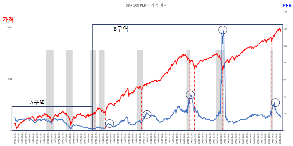 - S&P 500의 평균 PER은 00인데 지금은 00이므로 고평가 된 상태이다.