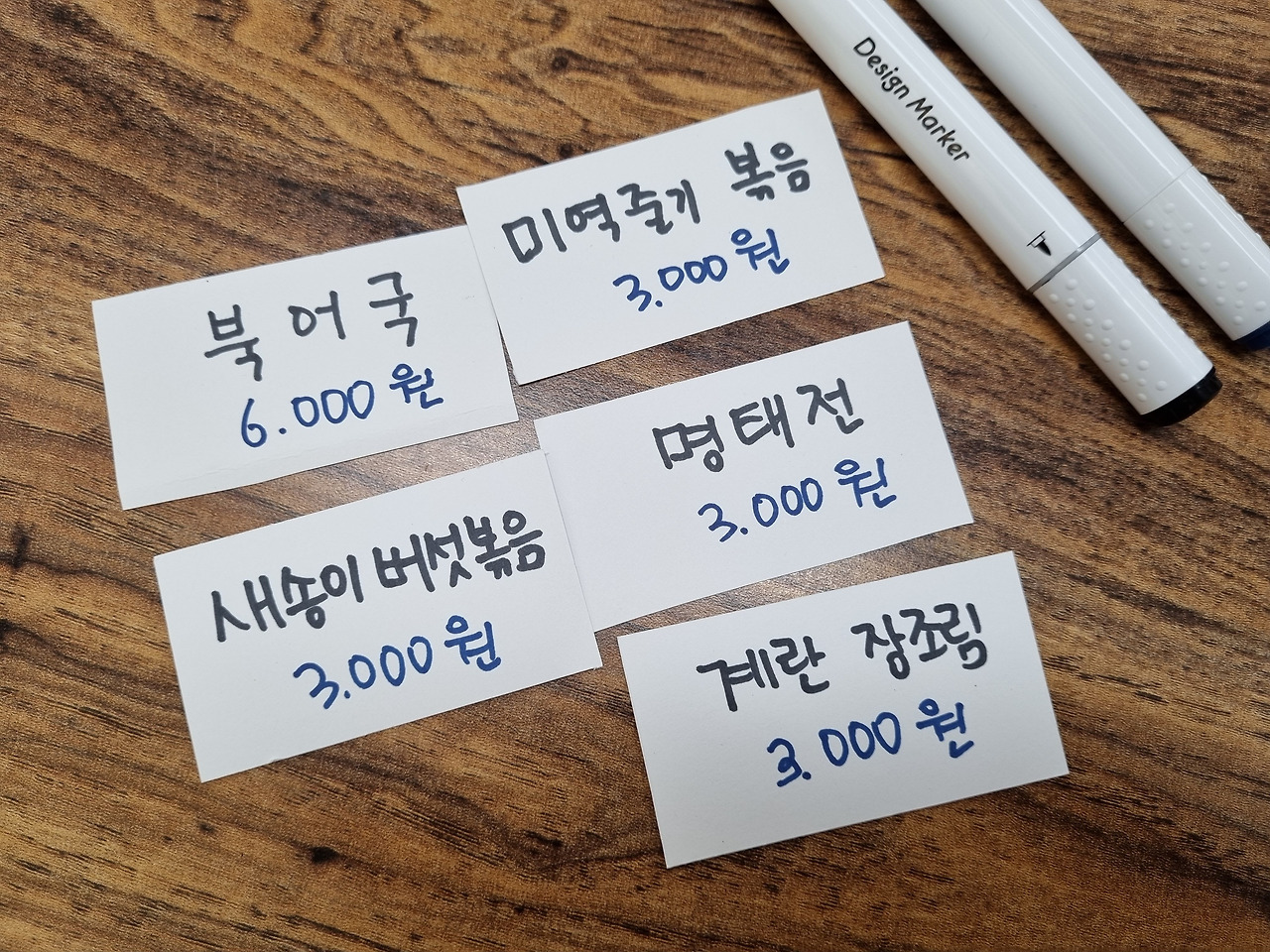 이를테면 멸치볶음이 3000원인지 3500원인지 헷갈릴 때, 손님이 가져온 젓갈이 오징어 젓갈인지 창난젓인지 헷갈릴 때. 오징어 젓갈과 창난젓을 구분해야 될 일이 내 인생에 생길 줄은 정말 몰랐다.