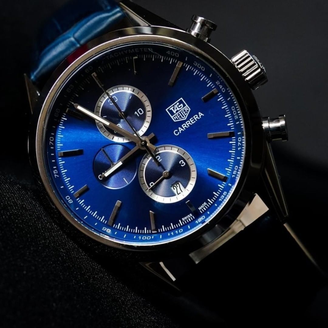 사실 이 가격대의 시계를 구한다면 예물에 꽤 많은 예산이 들어갔다는 뜻이다. 쓴 만큼 훌륭한 시계를 찾는 일은 쉽지 않다. 그렇기 때문에 분명 무브먼트와 디자인 그 철학마저 훌륭한 시계를 구해야 한다. 그렇기 때문에 나는 태그호이어(Tag Heuer) 사의 까레라 칼리버 1887(carrera calibre 1887)을 추천한다. 기본적으로 여러 종류의 다이얼이 있지만, 이 시계의 매력은 위에서 이야기한 크로노그래프가 가진 클래식함이 이 까레라 칼리버 1887의 이미지를 너무 잘 잡고 있다는 것이다. 한눈에 보아도 단숨에 사로잡힐 만한 매력을 가진 이 녀석은 cal1887 오토메틱 무브먼트를 를 장착하고 있다. 태그호이어 까레라 제품군에만 120여 가지의 라인이 있지만, 그중 단연 클래식함과 심플함 그리고 크로노그래프의 아름다움이 보여주는 칼리버 1887의 매력은 결혼식 버진로드에서 함께 해줄 드레스 워치로는 으뜸이라고 본다. 사실 칼리버 1887도 여러 모델을 가지고 있지만 에디터는 CAR2110.FC6266 모델을 추천한다. 기본적으로 레더 스트립을 장착한 녀석이고 다른 모델들보다 더 심플하고 묵직한 느낌을 준다. 가격대는 400만 원 중반대로써 이 글에서 마지막으로 설명할 녀석으로서 아마 이 모델을 위해 이 가격대의 시계 소개를 했다고 해도 과언이 아니다.