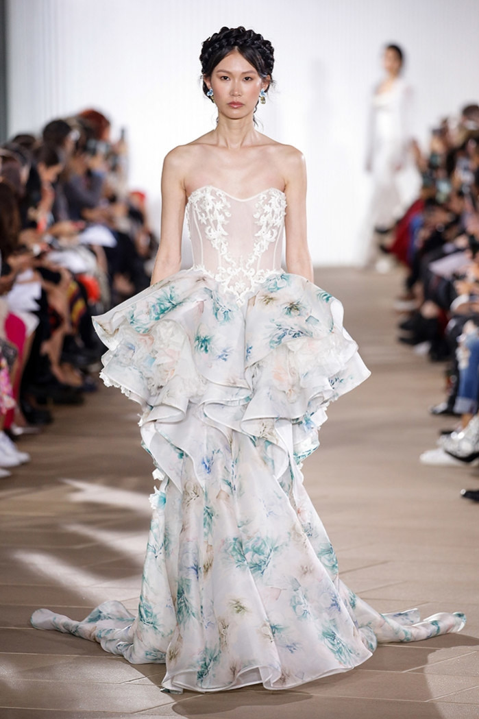 출처 : @marchesa 인스타그램미국 브랜드인 마르케사는 할리우드 스타들이 사랑하는 드레스로 유명합니다. 이번 2020 f/w에서는 꽃을 모티브로 하여 화려하고 입체적인 꽃 자수가 돋보이는 디자인을 선보였습니다. 그리고 꽃잎이 여러 겹 쌓여있는 것처럼 긴 베일과 레이스 볼레로를 활용하여 레이어드 스타일도 선보였네요. 국내에서 마르케사 드레스는 에스메랄다, 메종레브, 비욘드더드레스, 셀렉션H에서 만나 볼 수 있습니다.