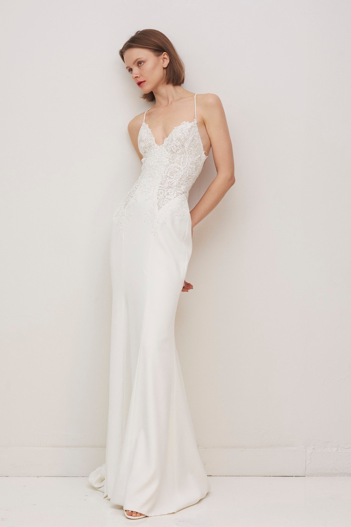 리비니는 모던하고 심플한 디자인을 만나볼 수 있는 브랜드입니다. 이번 시즌은 유럽의 성에서 영감을 받아 제작되었다고 하네요. 특히, 미니멀리즘을 추구하여 깨끗한 디자인에 트렌디한 포인트를 더 했어요. 실크와 시폰 소재의 슬립 드레스가 눈에 띕니다. 리비니는 비욘드더드레스, 마이도터스, 헤리티크 뉴욕에서 취급하고 있어요.