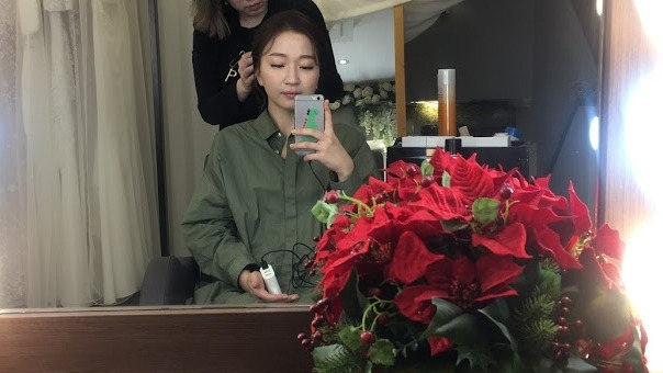 리허설 메이크업에서 그런 헤어를 시도해보았으나 아쉽게도 어울리지 않았다. (눈물) 어울리지 않는 것을 눈으로 확인했으니 결혼식 당일에는 평소처럼 자연스러운 헤어를 요청했다. 점점 내게 익숙하고 잘 어울리는 모습으로 헤어와 메이크업이 진행되었고 덕분에 편한 마음으로 결혼식을 진행할 수 있었다.
