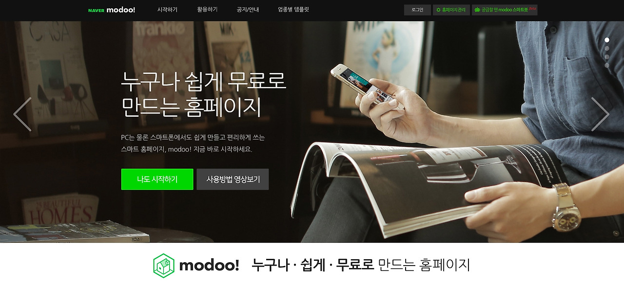 정보의 바다 인터넷에 찾아보니 나와 비슷한 고민을 하고 있는 사람들이 있었고 그들을 통해 네이버 modoo로 청첩장을 만들 수 있는 것을 알게 되었다. (네이버 modoo는 네이버에서 소상공인을 위해 제공하는 무료 홈페이지 제작 툴이다.)