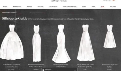 미국 사이트로 베라왕을 비롯해 대중적 사랑을 받는 브랜드의 드레스를 다양하게 취급하는 리테일러 중 하나, 홈페이지 내에서 웨딩드레스 실루엣별 드레스를 분류해서 볼 수 있다는 장점이 있다.