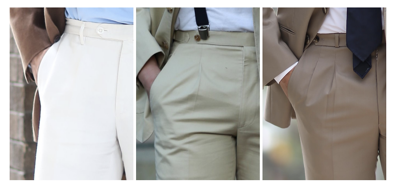 평소 캐주얼한 스타일을 입었다면 대체로 긴 정장 팬츠의 밑위에 어색한 느낌이 들 수 있지만, 셔츠와 같이 놓고 봤을 때 즐겨 입던 캐주얼보다 조금 더 긴 밑위가 격식 있는 분위기를 만들 수 있다.