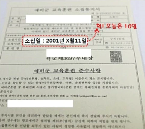 천천히 회사 근처 지하철역을 내려가서 지하철을 기다렸어요. 마침 플랫폼으로 지하철이 도착하였고, 가벼운 마음으로 지하철에 몸을 실으려는 순간 조금은 이상한 생각이 제 머리를 스쳐갔죠. 그냥 싸한 느낌이랄까? 혹시나 해서 예비군 훈련 참석 통지서를 꺼내어서 참석 요청 날짜를본 순간정말 머릿속이 아득해지더라고요.