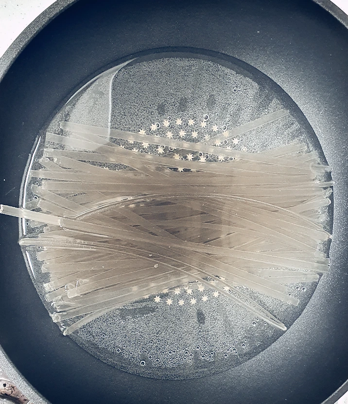 우선 양념으로 쓸 초장(고추장 +설탕+식초+참기름)을 만들고, 당면을 삶기로 했다. 집에 당면을 찾다 보니 '납작 당면'이 있어서 오늘은 이 '납작 당면'을 사용하기로 했다. 일반 당면도 괜찮으니 굳이 납작 당면을 사용하지 않아도 된다. 납작 당면은 면발도 굵고 해서 물을 불위에 올리고 나서 바로 당면부터 넣었다. 일반 당면보다 2배 이상은 더 끓여야 되기 때문에 다른 재료 손질은 당면을 물에 넣고 나서 해도 충분했다.