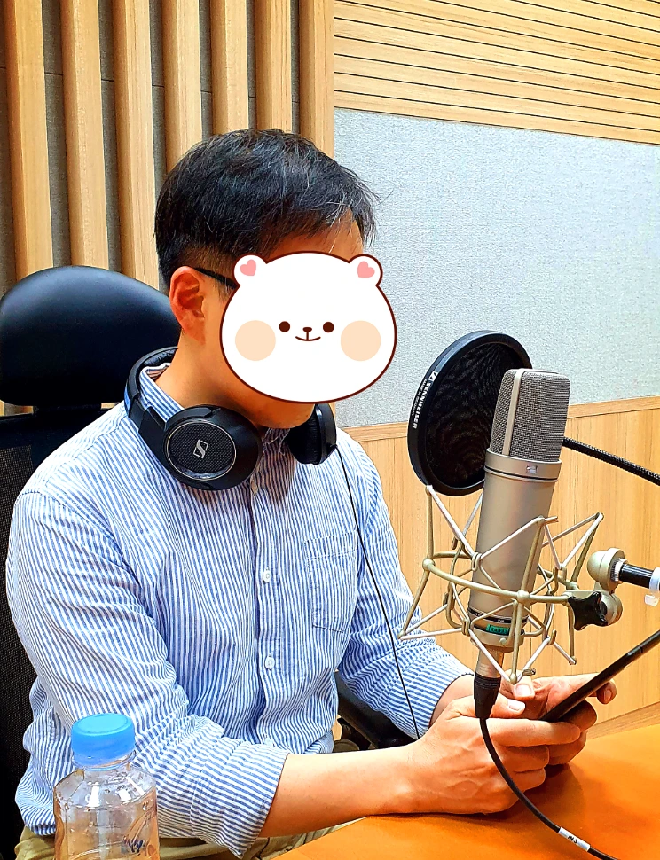 앞에 작가님 녹음이 끝나고 PD님의 안내로 스튜디오로 들어간 난 오히려 대기할 때보다 조금 진정된 마음으로 녹음을 시작했고, 처음 준비한 멘트로 마이크 시험을 끝낸 후 돌아온 '밀크 PD'님의 피드백에 더욱 자신감을 가질 수 있었다.