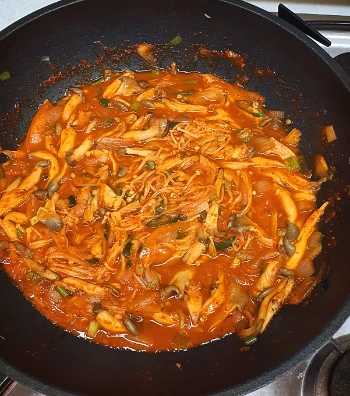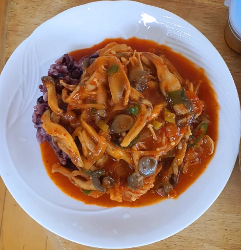 오늘은 아이들과 아내가 모두 좋아하는 매콤 버섯 덮밥을 만들어 봤어요.