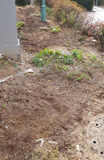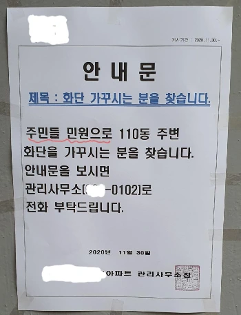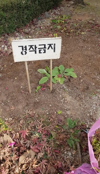 "안녕하세요, 혹시 저희 화단에 '경작 금지' 푯말을 관리실에서 꽂았나요?"