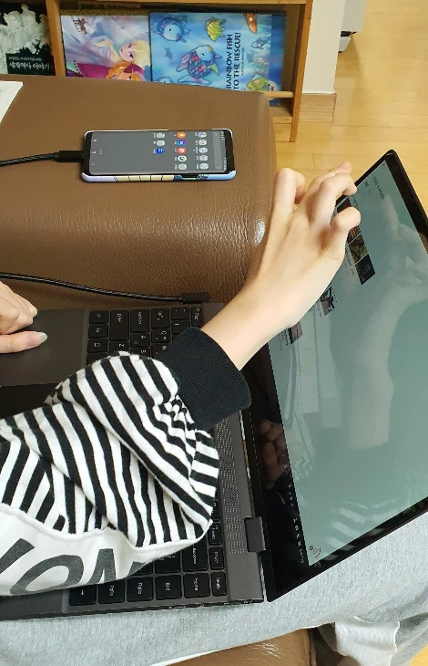 갤럭시 기종은 삼성 덱스라는 기능을 사용하면 이 모니터를 통해 일반 PC 화면과 같은 디스플레이로 스마트폰과 모니터를 따로 조작할 수 있다고 하니 정말 내 구매 의욕을 당겼다. 충전해서 쓸 수도 있고, 충전도 일반 스마트폰 충전기를 사용한다고 하니 이 또한 놀라지 않을 수가 없었다. 게다가 모니터에 터치 스크린도 지원한다니 세상 정말 좋아졌다는 생각이 들었다.
