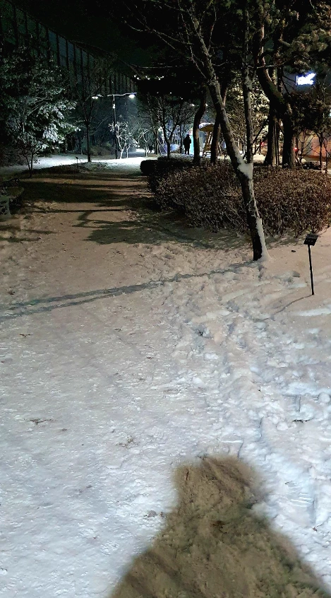 그렇게 낭만이라고는 '1도' 없는 배신자(?) 아들은 일초의 망설임도 없이 집으로 들어가 버렸다. 눈 오던 밤은 그렇게 조용히 깊어갔다. 아들이 집으로 들어간 바람에 우리도 아쉬웠던 눈 장난을 마무리하고 집으로 들어갔다. 살아가는 모든 하루가 오늘만 같을 수는 없겠지만, 가족이 있어서 피곤했던 하루가 행복으로 마감되고, 피로했던 일상이 아이들과 아내의 웃음으로 회복되었다. 오늘도 난 그렇게 치유하고, 회복했고 그리고 내일을 또 힘차게 살아갈 힘을 채웠다. 나를 설레게 했던 건 눈이 아니라 내리는 눈을 함께 즐길 가족 때문이 아닐까.