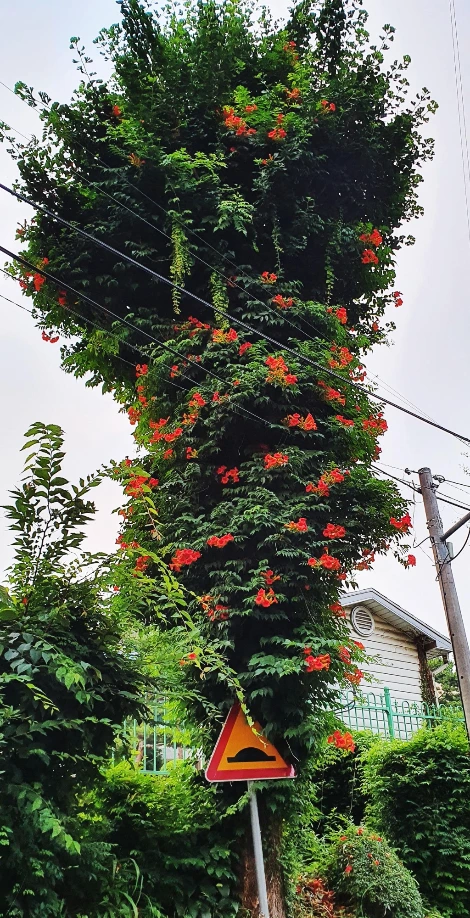 얼마 전 아내와의 산책길에 아주 익숙한 꽃나무를 봤다. 높게 올라간 나무 가지와 잎들 사이사이로 빼곡히 몸을 빼고 있는 주황색 꽃은 바로 '능소화'였다. 이 꽃을 잘 모르는 사람이 봤으면 건물 3층 높이의 나무에 화려하고, 큰 꽃잎을 자랑하는 꽃을 보며 신기해했을 것이다. 하지만 자세히 들여다보면 능소화는 높고, 곧게 올라간 은행나무에 자신의 가지인 덩굴을 감고 올라가 그 나무에 뿌리를 내리고, 양분을 흡수해서 화려하게 꽃을 피웠다. 마치 자신이 그 커다란 나무인양 그 화려함을 뽐내며 지나다니는 사람들을 현혹시킨다.