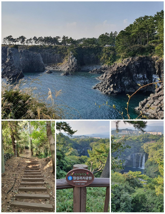 그렇게 길의 끝을 아쉬워할 때쯤 천지연 폭포의 장관이 눈앞에 보이고, 폭포의 웅장함은 이곳 칠십리 공원 전망대에서도 느껴질 만큼 대단해 보였다. 30여 년 전 고등학교 수학여행 때 가보고 직접 본 적이 없었던 풍경이지만 그 이질적인 모습에서 익숙함을 느낄 수 있었다. 워낙 오래전 모습이었지만 폭포 아래에서 바라봤던 그 웅장했던 폭포의 모습이 지금도 눈에 선하리만큼 어린 시절 그 모습은 지금도 잊히지 않는다. 비가 별로 오지 않는 가을에도 쏟아지는 폭포 물줄기는 우리가 살아가는 인생과 같아 보였다. 멈추지 않고 흘러가는 지금 이 시간처럼 폭포의 물줄기 또한 한 번을 쉼 없이 떨어지고, 흐른다.