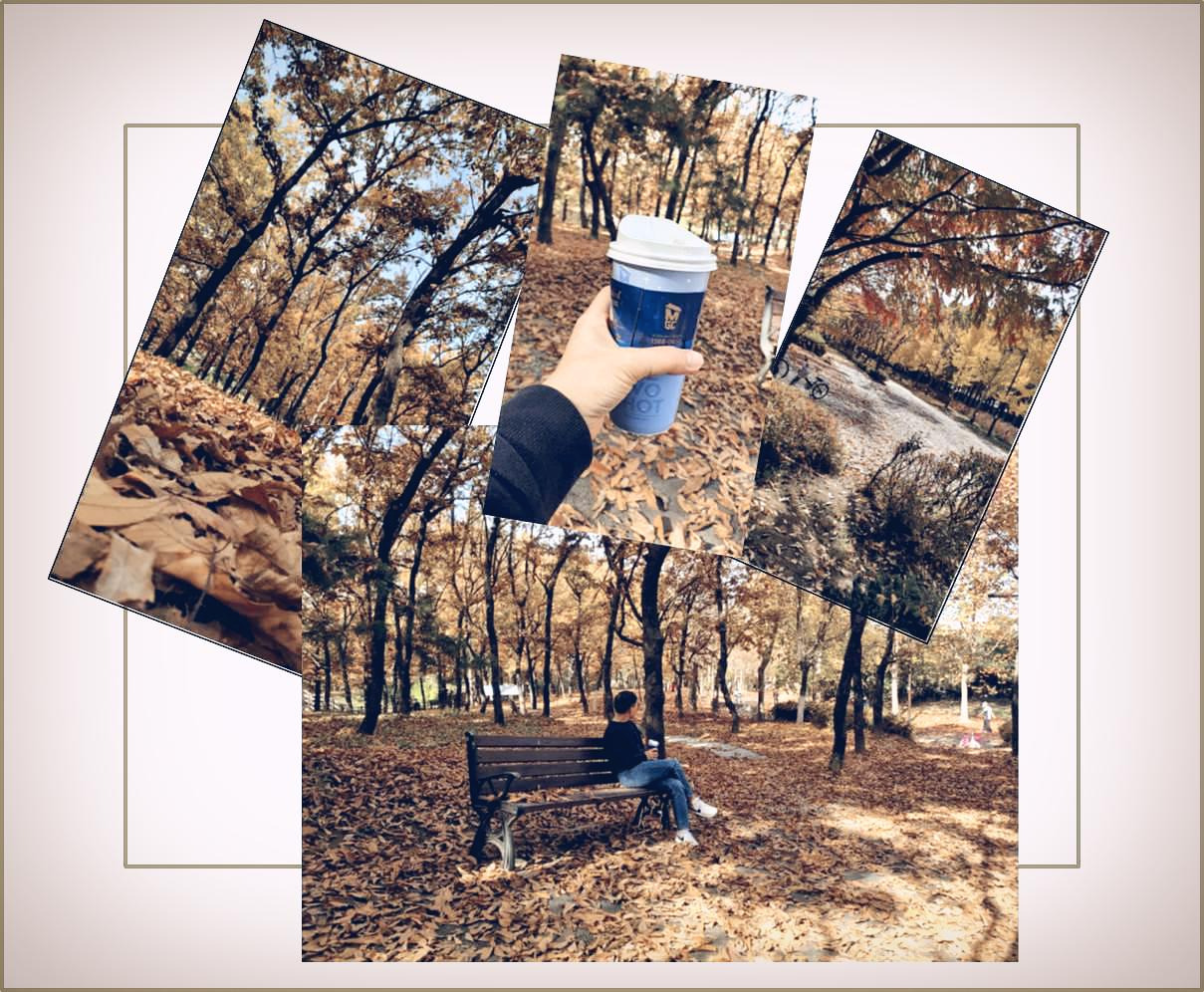 집에서 가깝지는 않지만 가볍게 트레킹 할 복장으로 아내와 호수공원을 가끔 찾는다. 오늘도 아내와 걷는 내내 이런저런 이야기 꽃을 피우며 얘기하다 보니 어느새 호수공원 근처까지 발걸음이 닿았다. 공원 벤치에서 분위기 있게 아내와 커피 타임을 갖기 위해 공원 근처 카페에서 커피를 주문했다. 주문한 커피를 기다리는 동안 사람들은 오전임에도 삼삼오오 우리 앞을 지나 공원으로 아니 가을 속으로 들어간다. 주문한 커피가 나왔고, 우리도 테이크 아웃한 커피를 들고 가을 속으로 한 참을 걸어 들어갔다. 걸어 들어간 울창한 나무 숲 조용한 벤치에 앉아 우린 여유롭게 가을을 즐겼다. 낙엽 눈이 그득 쌓인 벤치 주변에서 가을 냄새와 함께 맡는 커피 향기는 그 어느 때보다 향기로웠다.