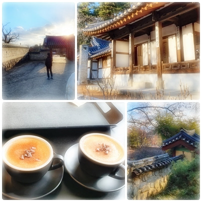 바닷가에서 꽁꽁 얼어붙은 몸을 따뜻하게 녹이고 강릉에서만 볼 수 있는 여행지를 찾아봤다. 마침 강원도가 고향인 아내와 의견을 나누던 중 아내도 한 번도 가보지 않았다는 오죽헌을 가보기로 했다. 참고로 오죽헌은 보물 제165호로 신사임당과 율곡 이이가 태어난 집이다. 한국의 주택 중 가장 오래된 건축물 중 하나라고 한다. 아이들에게도 의미 있는 장소의 방문일 듯 싶었고, 경포대 해수욕장에서도 그리 멀지 않았다. 우선은 꽁꽁 얼어붙은 몸도 녹일 겸 오죽헌 근처 '서O' 카페에서 분위기 있게 커피 한 잔을 하면서 남은 여행을 계획했고, 오늘 오전부터 정오까지 버라이어티 했던 감정들을 다시 한번 복귀했다. 나의 추천으로 아들은 '아인슈페너'를 주문해서 마셨는데 조금은 독특했던 신맛에 카페를 나오면서는 자신의 스타일은 아니라는 귀띔을 했다.