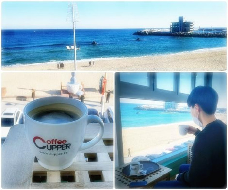 열차 시간까지 많이 남은 시간. 마지막으로 찾은 여행의 종착지는 강릉 커피거리로 유명한 안목해변이었다. 커피를 좋아하지만 굳이 커피 거리를 찾거나 커피 맛집을 찾는 스타일은 아니지만 그래도 바다를 찾았으니 원 없이 바다는 보고 가는 게 후회가 없을 듯했다. 쌀쌀한 바닷바람에 끌고 있는 캐리어까지 짐스러웠던 터라 따뜻하고 바다가 보이는 커피거리 카페의 바다가 보이는 3층 자리만큼 명당인 곳은 없는 듯했다. 택시에서 내려서 주변에 널려있는 카페 중에 3층 자리가 비어있는 곳을 찾았고, 가까운 카페에 3층 자리가 빈 것을 보고 바로 카페로 직행한 우린 그렇게 밖에서 본 자리에 나란히 앉아 여행의 마지막 시간을 커피와 함께 음미했다. 불과 일이 년 전만 해도 가족 모두가 카페에서 주문을 할 때면 아이들과 아내와 나의 음료가 달랐지만 이젠 어느새 부쩍 커버린 아들까지 커피 주문에 합류하니 아메리카노 세잔에 딸의 음료만 하나 더 추가다. 애들이 크니 좋은 점이 하나 더 늘었다. 그렇게 바다를 보며 망중한을 느끼던 중 바라본 아들의 옆모습에 부쩍 우리 품을 떠날 날이 오래지 않았다는 생각이 들었다. 우리의 강릉 여행은 그렇게 끝이 나고 있었다.