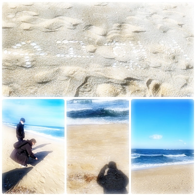 다행히 여행을 시작하는 지점인 강릉역에 도착해서 '합격' 소식을 확인했고, 가족 여행에 '수고했어'라는 테마 외에도 '축하해'라는 이유가 하나 더 붙었다. 그렇게 본격적으로 시작된 여행에서 우리가 가장 먼저 찾은 곳은 당연하게도 바다였다. 경포대 해수욕장을 찾은 우린 시리도록 파란 하늘과 잉크빛 겨울 바다를 보며 추운 날씨도 잠시 잊고 각자 사진을 찍느라 한참을 서로의 시간을 가졌다. 그렇게 한 참을 바다를 보며 풍경만을 담던 우린 어느새 여행에 남는 건 사진이라는 말을 실천이라도 하듯이 둘둘씩 얼굴을 맞대고 사진을 찍었다. 난 아들 합격도 합격이지만 한 해 동안 고생한 우리 가족 모두에게 메시지를 담고 싶은 마음에 모래사장에 급하게 조개껍질로 메시지를 쓰기 시작했고, 손도 많이 시리고 생각보다 오래 걸리긴 했지만 '수고했어'라는 마음을 담은 메시지를 경포대 해수욕장에 남기고 우린 바다를 뒤로한 채 다음 행선지로 발걸음을 옮겼다.