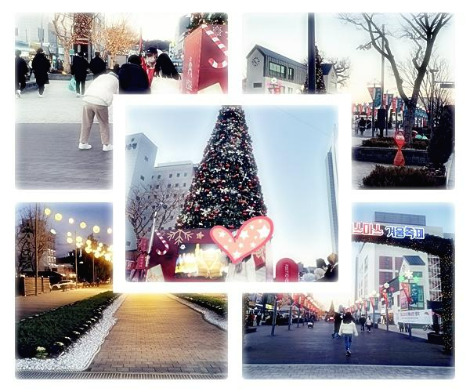 저녁을 먹기 위해 찾은 곳은 강릉 중앙시장 근처의 크리스마스 겨울축제 거리였다. 반짝반짝 빛나는 조명에 커다란 대형 트리까지 크리스마스 시즌에 맞춰 제대로 눈 즐길 거리를 만났다. 요즘은 체크카드, 신용카드 때문에 지갑에 지폐 한 장 없는 게 일상이지만 여행이라서 그런지 아내 지갑에는 여러 장의 지폐가 있었다. 몇 장의 지폐로 가족 모두가 구세군 냄비에 예쁜 마음과 함께 지폐 여러 장을 넣었다. 쌀쌀했던 온도가 조금은 올라간 것 같은 기분이 들었다. 따뜻했던 마음만큼이나 거리의 조명들도 어둠이 찾아오자 더 밝은 빛을 내뿜기 시작했고, 조금 더 이색적인 거리의 풍경을 비췄다.