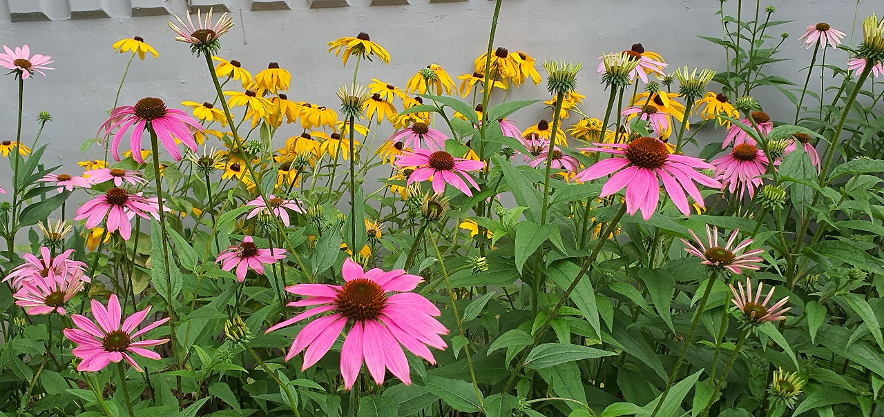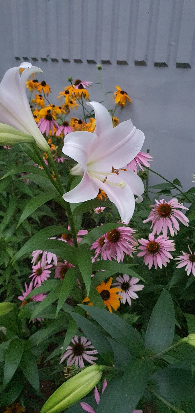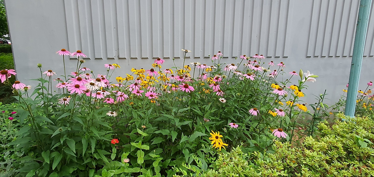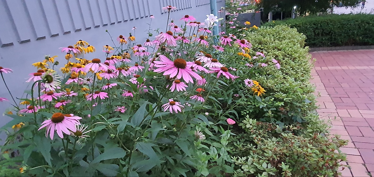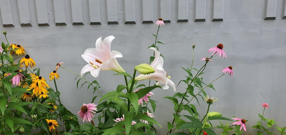 올여름은 해바라기를 닮은 노란빛의 루드베키아와 핑크빛이 너무 고운 국화과의 에키네시아가 말 그대로 화단을 빼곡히 채웠다. 작년에는 키만 쑥 자라나고 실하지 못해서 꽃이 모두 땅을 바라봤던 녀석들인데 우리 인생의 시련 같은 추운 겨울을 이겨내고 뚫고 올라온 녀석들이어서 그런지 올해엔 줄기도 튼튼하고, 해바라기과의 특성을 제대로 살려서 고개는 빳빳하게 하늘을 본다. 두 녀석들 사이로 올해는 하얗고 고운 자태에 향기까지 그윽한 백합이 신의 한 수다.