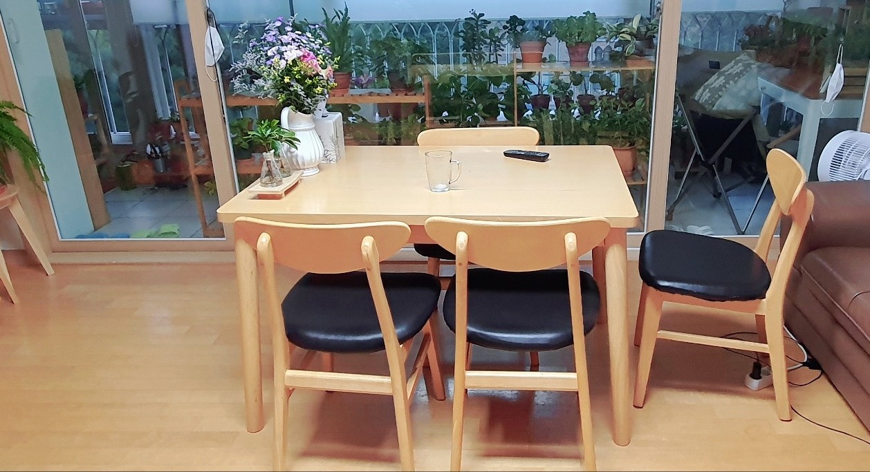 이전 집들은 주방과 거실 구분이 없었고, 또 크지 않았던 거실과 주방 때문에 전혀 구입을 고려하지 않았다. 게다가 서울살이 할 때만 해도 우리 가족의 구성원은 다섯이었다. 두 아이, 아내, 나 그리고 처남이 마지막 다섯 번째 구성원이었다. 우린 오랜 시간 동안 함께 살았다. 네 명이 앉는 게 기본이었던 식탁은 크지 않는 집에서 5인용 식탁은 사치 같은 생각이 들었나 보다. 그래서 더더욱 식탁을 고려해본 적이 없었다.