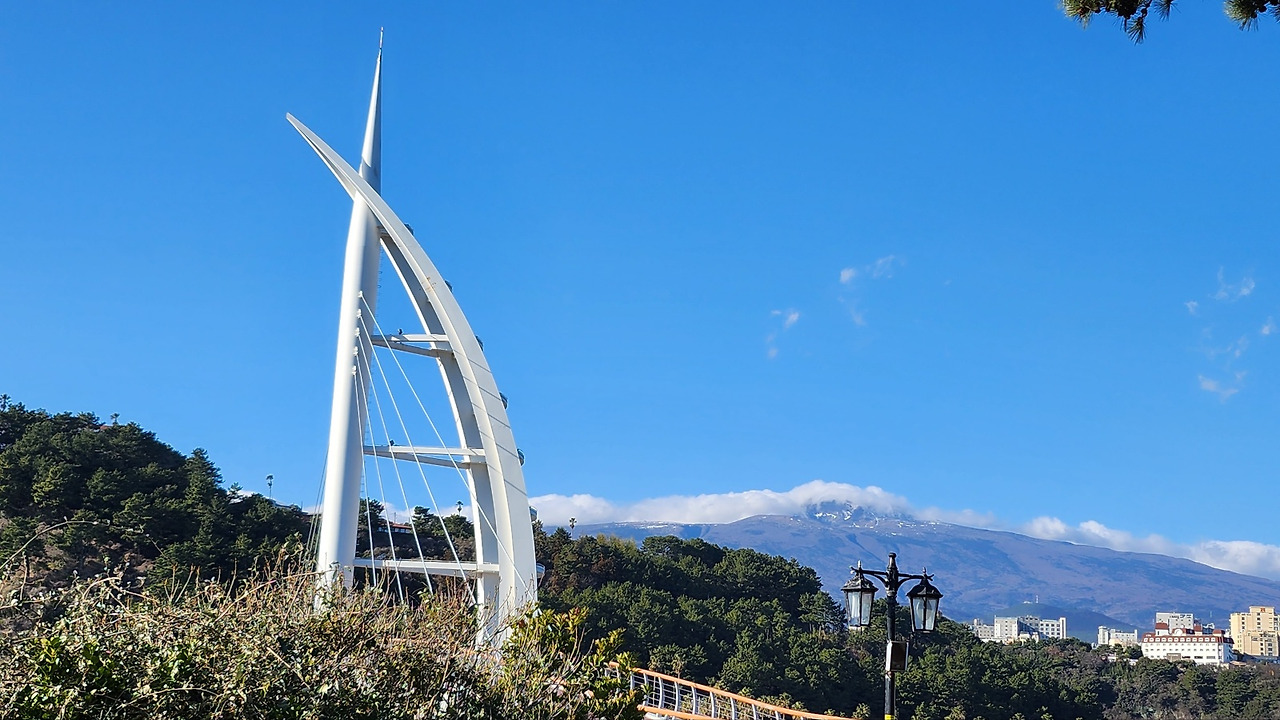 새연교에서 바라본 한라산(좌측)과 윤슬(우측)