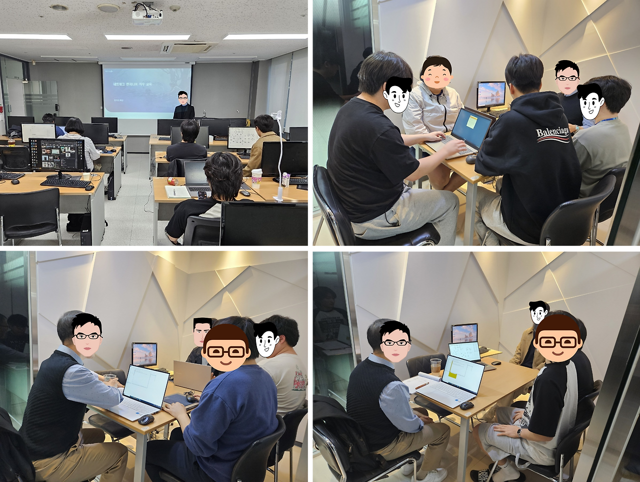 강연이 끝나고 바로 각 조별로 멘토링을 맡아 진행했다. 학생들에게는 이 과정이 사 개월의 종착역과 같다. 삼 개월 학습 과정 동안 배웠던 것을 활용해 프로젝트 주제 선정부터 수행, 발표까지 이어질 예정된 최종 과정이었다. 이런 프로젝트 주제 선정을 각 조별로 멘토링해서 도와주는 게 내 이번 강연의 연장이었다. 물론 오늘 이후 중간 기술점검 및 피드백 또한 멘토인 내 몫이다.