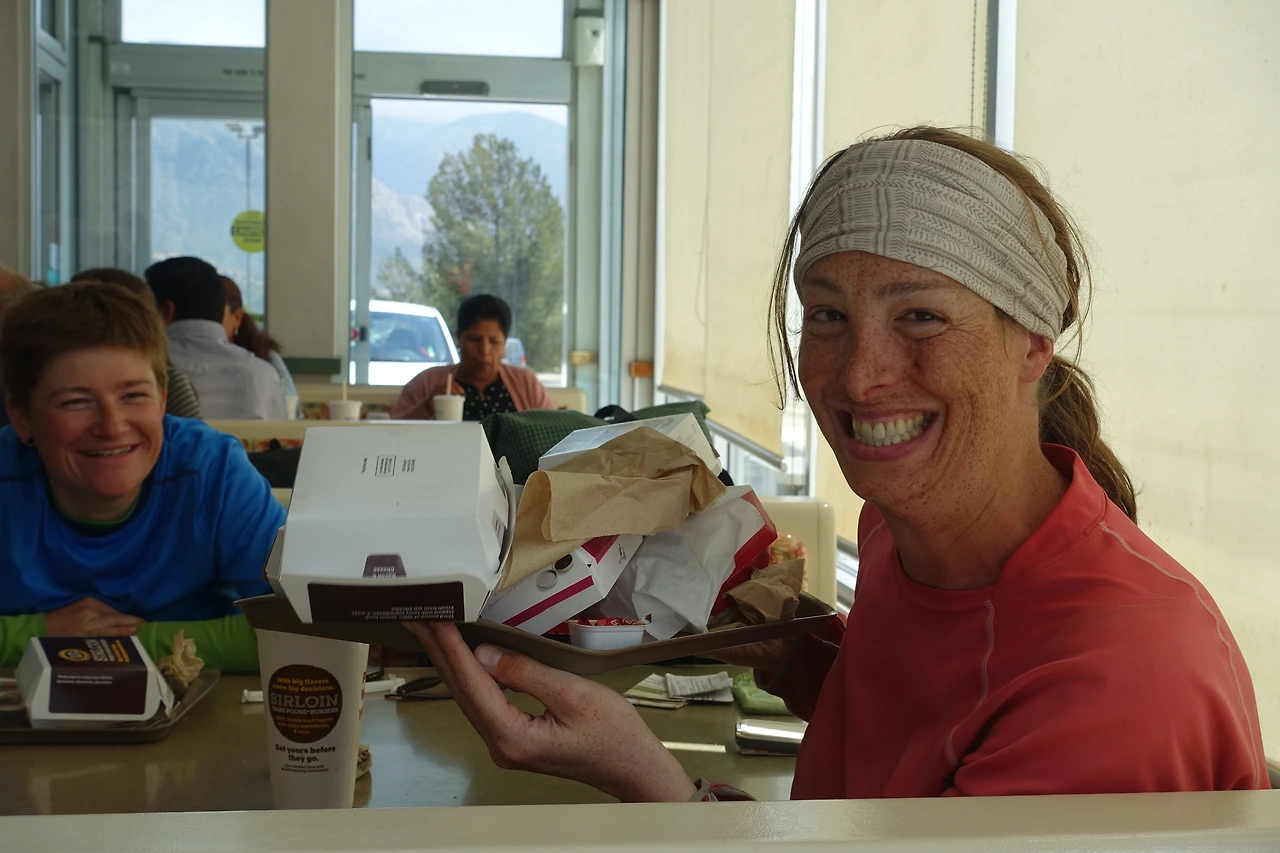 쉬지도 않고 투정도 없이 16mi을 걸어서 Cajon pass에 도착했다. 도로 우측에 위치한 웅장하면서도 매력적인 맥도널드의 M 로고가 나를 보고 어서 오라며 손짓을 하는 듯이 보였다. 트레일에서 벗어나 맥도널드로 향하는 길에 웬 남자가 차에서 내려 트레일이 어느 쪽이냐고 물었는데, 내 갈 길이 바빠 영혼 없이 뒤쪽으로 가면 표지판이 나오는 길이라고 손짓과 함께 알려줬다. 나중에 알고 보니 이 친구가 Kate의 남편이었다.