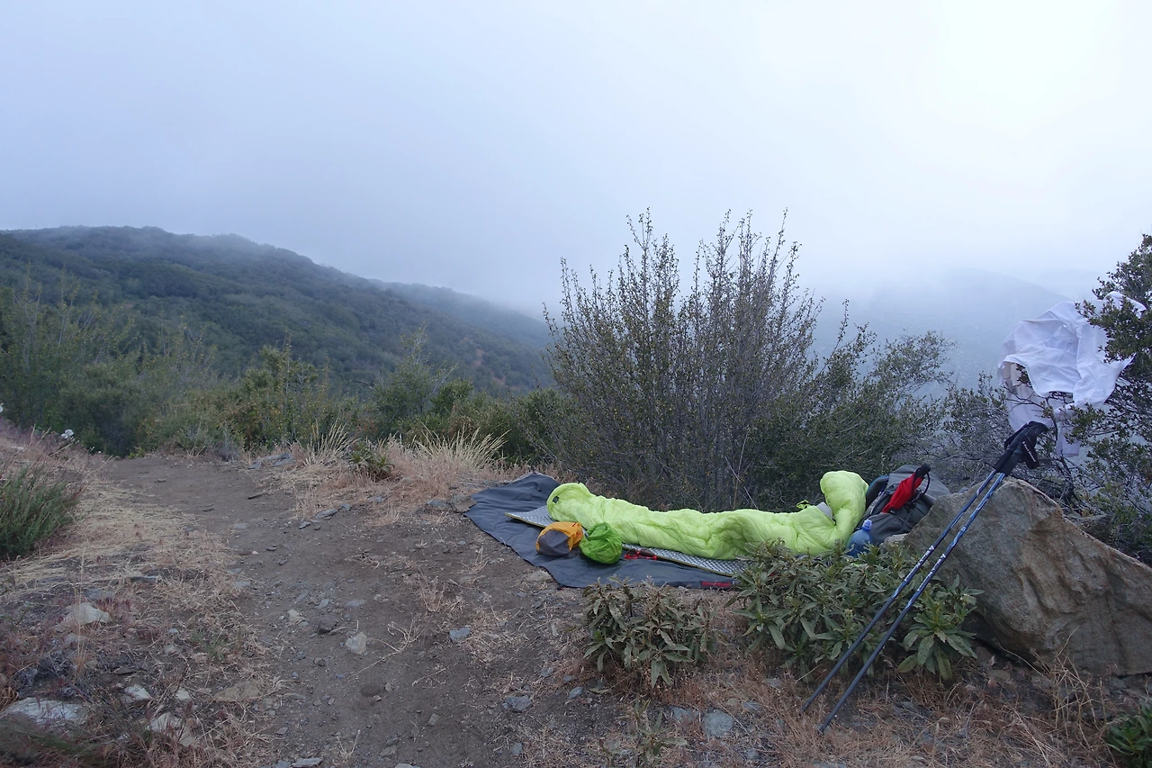 고도가 좀 있는 곳이라 구름이 낮게 깔리면 앞이 잘 보이지 않았기에 무리하는 것보단 길 가에서 쪽잠이라도 자고 나서는 게 나을 듯해서 길 옆에 한 몸 누을 수 있는 공간에 자리를 잡았다.