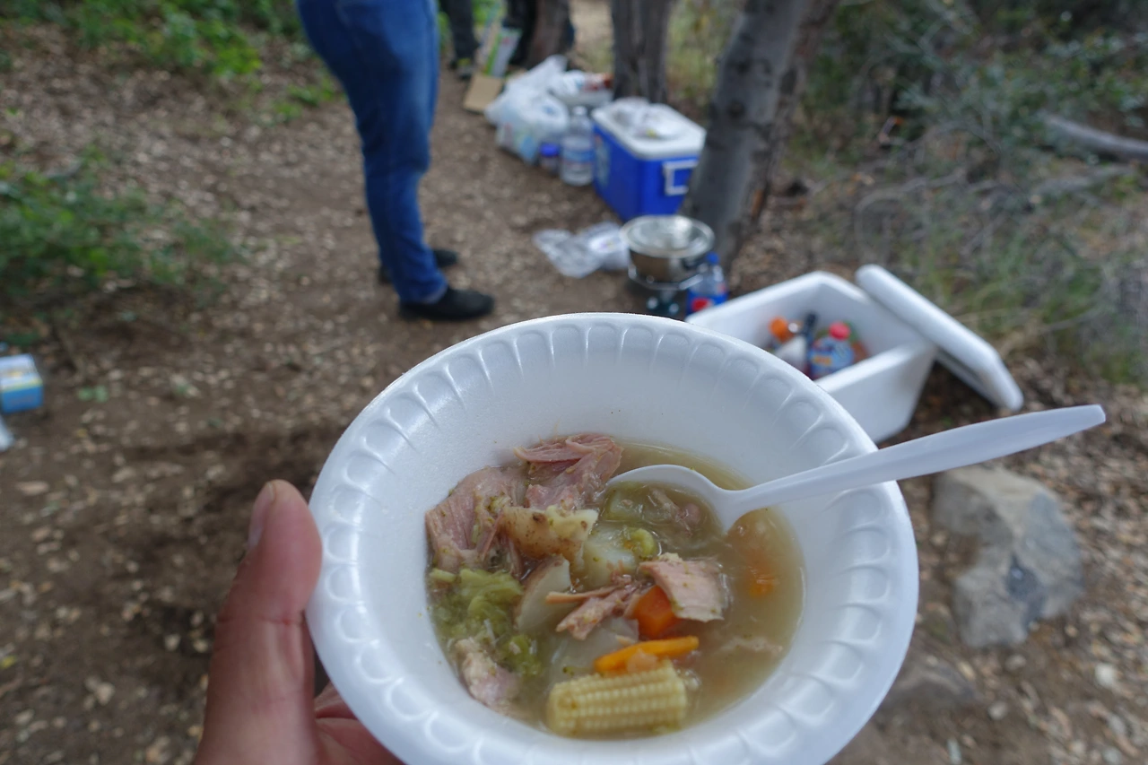 두 번째로 만난 '론니 터틀'이라는 분은 인근 마을의 초등학교 선생님으로 오전 10시부터 이 곳에 나와 있었지만, 첫 하이커가 오후 4시가 되어서야 지났고 내가 도착한 시간은 오후 6시 정도. 오늘 이곳을 지나간 하이커가 10명 정도였다고 한다. 거동이 불편한 어머니는 차에서 기다리시고, 그 어머니가 손수 끓인 닭고기 스튜와 소다 등을 다 옮겼는데 말이다. 그들이 만약 대가를 바라고 이런 일을 한다면 절대 이렇게 하지는 않을 거란 생각이 든다. 만약 그렇다면 차라리 트레일 길목에 시원한 맥주와 팝콘을 파는 노점을 차리는 게 훨씬 효율적인데.. 등산로 입구마다 파전과 막걸리를 파는 우리나라를 생각한다면 말이다.