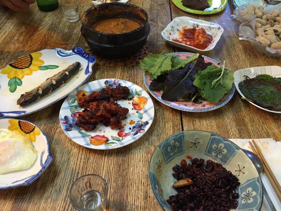 맥주로 취기가 오른 얼굴색이 조명 색과 같아졌을 즈음, 어르신께서 저녁을 먹어야 한다며 직접 요리를 하시기 시작했다. 혼자 사신지 오래되셔서 그런지 주방기구를 다루시는 솜씨가 여사롭지 않았고, 다다다닥 하는 도마 소리가 귓가에 맴도는 와중에 묵은지 콩비지찌개, 생선구이, 돼지고기 석쇠구이 등 한국에서도 식당에 가지 않는 한 먹을 수 없던 음식들이 식탁 위를 수놓기 시작했다.