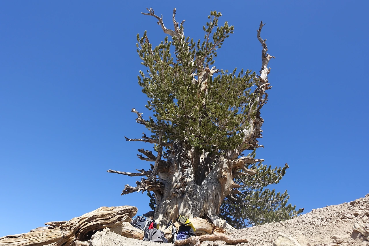 정상에 가까워질수록 찬 바람과 눈보라까지 맞으며 견뎌낸 세월의 무게가 고스란히 느껴지는 찢어진 나무들을 볼 수 있었다. 찢어지고 꺾여 언뜻 보면 키 작은 잡목으로 보일 수도 있지만, 그 나무들을 보고 있자니 이제 갓 30년 조금 넘게 살아온 나로서는 고개가 절로 숙여질 수 밖에 없었다. 정상을 목전에 두고는 'THE-WALLY-WALDRON TREE'라는 팻말이 세워진 1,500년이 되었다는 커다란 고목을 만나게 되었다. 1,500년을 살아 울퉁불풍한 노송이지만 아직도 푸른 잎을 뽐내며 건장함을 과시하고 있다는 느낌을 묵직하게 느낄 수 있었다.