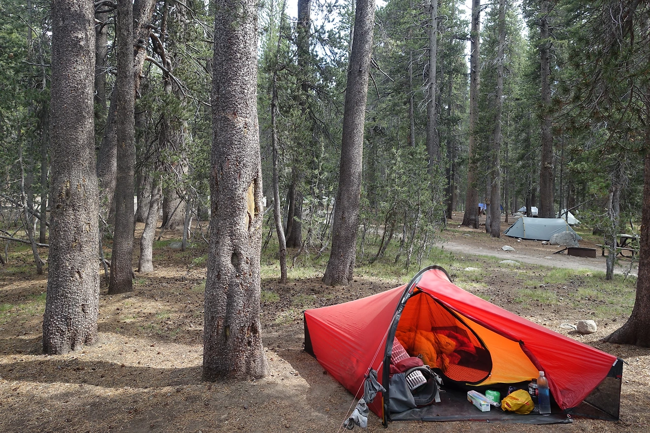 내 텐트는 스웨덴의 텐트 메이커인 'Hilleberg'에서 나온 'Enan'이라는 모델이 인데, 비자립 형태의 일인용 텐트이지만 넓은 전실이 있어 우천 시 짐을 보관하거나 식사를 준비하기도 편했다. 비자립이라 바위같이 Stake를 박기가 어려운 곳에서는 돌이나 나무를 이용해 텐트를 쳐야 하는 불편함이 있었지만, 그만큼 폴대의 무게가 줄어 가벼웠다. 이런 형태의 텐트는 미국 브랜드에서도 나오곤 했는데, 강렬한 빨간색의 내 텐트가 이쁘고 신기해 보였는지 어느 브랜드의 텐트고, 가격은 어느 정도, 무게는 얼마나 나가는지 지나가면서 다들 물어보곤 했다. 사실 미국인들은 자기네 브랜드 외에는 별로 관심을 두지 않는 듯했다. 그래서 우리는 다 알고 있는 유럽 브랜드를 모르는 하이커들이 많았다. 미서부 쪽에는 REI란 거대 유통망이 자리를 잡고 있었기에 집에서 가까운 REI 매장만 들러도 구할 수 있는 'Bigagnes', 'Marmot', 'MSR' 같은 미국 브랜드의 제품을 주로 애용했다. 손쉽게 구할 수 있으니 굳이 다른 나라의 브랜드 제품을 찾아 쓸 필요가 없는 것이었다. 물론 걔 중에 장비에 대해 관심이 많은 친구들도 있겠지만, 대부분의 하이커들이 그랬다. 그런 그들을 향해 독일에서 온 하이커들은 우스갯소리로 '우물 안의 개구리'라고 하기도 했다.