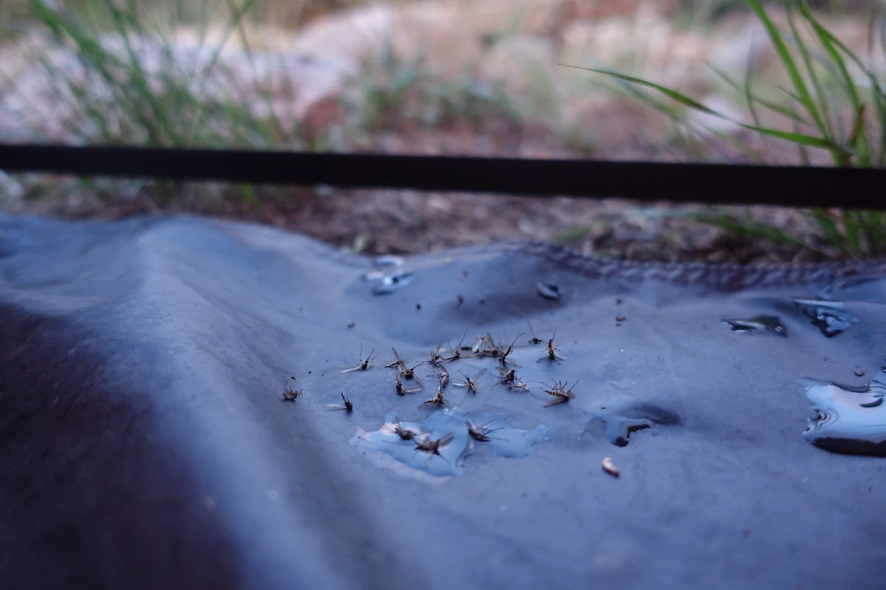 아침에 눈떠서 저녁에 눈을 감을 때까지, 심지어 걸을 때마저도 모기와의 전쟁은 계속되었다. 노출된 얼굴과 목까지는 버그햇으로 그나마 가릴 수가 있었지만, 그 외의 다른 곳은 옷을 입었어도 안전지대가 아니었다. 아무리 두 팔을 휘저으며 달리듯이 걸어봐도 귓가를 앵앵거리는 모기떼들의 공격은 멈출 줄을 몰랐고, 잠깐의 틈만 보이면 옷을 뚫고 내 피 같은 피를 빨아 마셨다. 잠시 행동 식이라도 먹기 위해 멈추기라도 할 때는 '그래 나도 간식 좀 먹자' 하고는 피를 빨기 위해 온몸에 덕지덕지 달라붙기 시작했다. 흘린 땀 때문에 달려드는 건가 싶어 물만 보이면 몸을 씻어도 보았지만, 말짱 헛수고였다. 거금을 들여 준비한 스프레이도 효과는 잠깐 뿐이었고, 모기에서 벗어날 수 있는 시간은 오직 텐트 안에 들어갔을 때뿐이었다. 그것도 텐트를 칠 때 안으로 들어간 모기를 다 잡은 후에야 안도감을 느낄 수 있었다.
