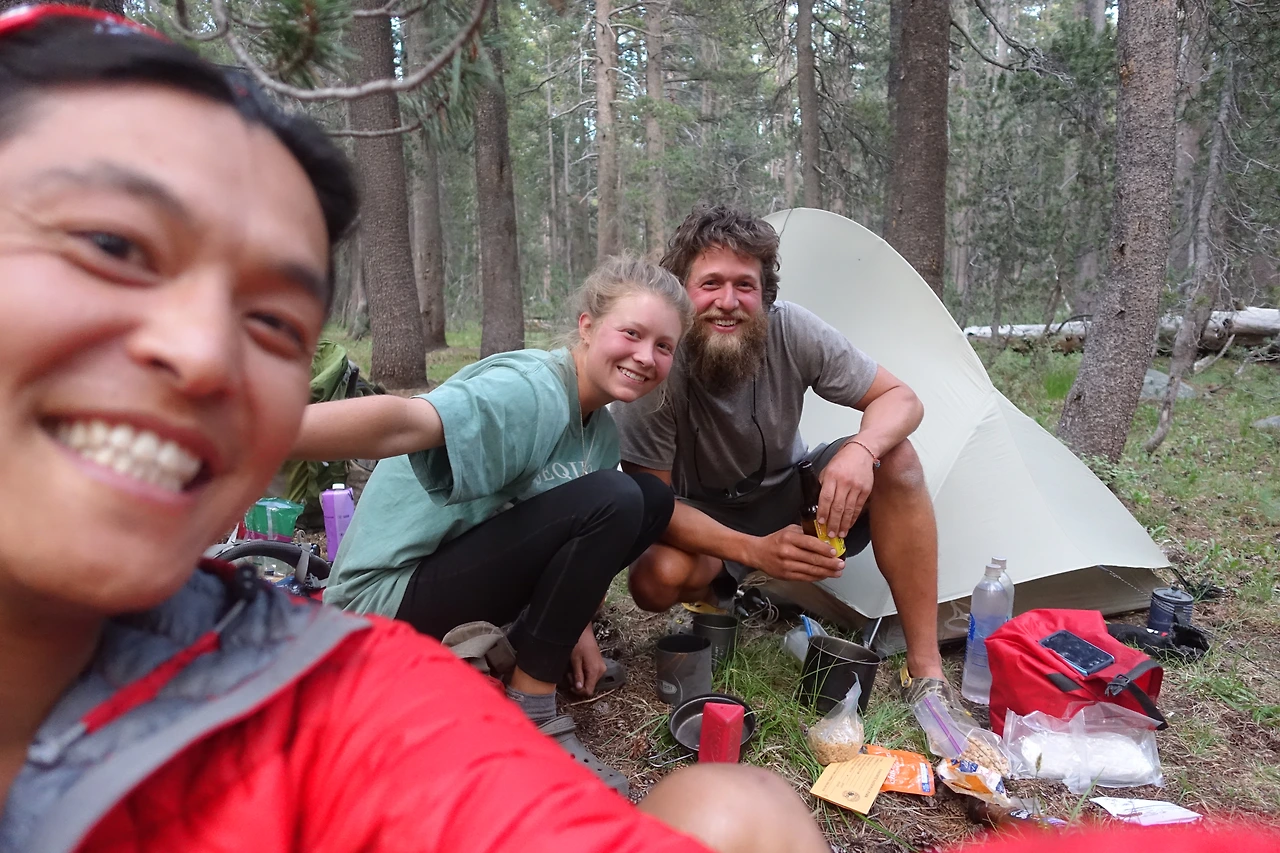 한쪽 구석에 있던 남녀 하이커 한쌍과 함께 저녁을 먹었는데, 둘이 워낙 닮은 거 같아 남매냐고 물어보니 한참을 웃더니 이미 약혼을 한 커플이라고 했다. 아까 보급품을 찾기 위해 들린 우체국에서도 똑같은 말을 들었는데 서로의 얼굴을 다시 한번 보더니 우리가 그렇게 닮았냐며 흥미롭다는 표정을 지었다. Rivergelly와 Chopsticks. 트레일을 걷다 시에라로 넘어왔을 때, 큰 세콰이어 나무 아래서 약혼을 했다는 그들은 이 트레일을 완주하고 나서 결혼식을 올릴 거라 했다. 건축일을 했던 Rivergelly가 단돈 $700로 만든 통나무집을 보여줬는데, 당장이라도 내가 들어가 살고 싶을 정도로 잘 지은 집이라 깜짝 놀라기도 했다. 이름에서도 알 수 있듯이 Chopsticks는 젓가락질을 정말 잘했다. 주로 포크를 사용하는 다른 하이커들과는 달리 젓가락을 애용했는데 젓가락을 쥐는 손이 어색하지가 않았다. 이것도 한번 젓가락으로 먹어보라며 가져온 신라면을 그녀에게도 하나 나눠주었다.